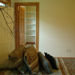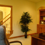 • Office with built in birch cabinets