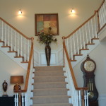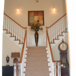 - Grand two story foyer with Brazilian Cherry flooring and dramatic open stairway
