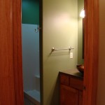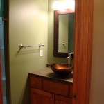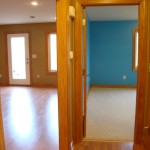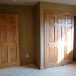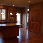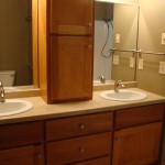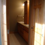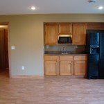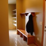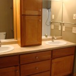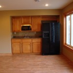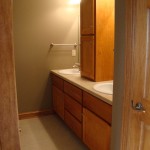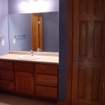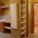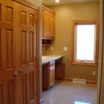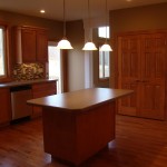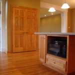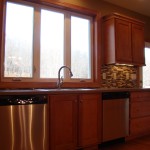 - Custom birch cabinets