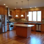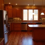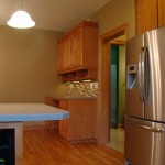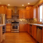 - Tiled backsplash and hardwood flooring