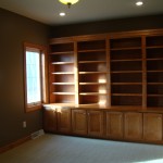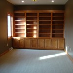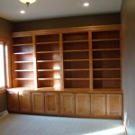 - Unique library with double doors and built in cabinets