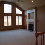 - Vaulted great room with two sided wood burning fireplace